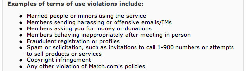 So let me get this straight. You want to ban from Match everyone who is married, offensive, inappropriate, lying, or sending out spam? You realize that’s EVERYONE on Match, right? You kick out all the liars, cheats, and scum bags and you’re gonna be left with two old ladies from Florida and a fake profile someone put up for their dog. And I’m not gonna lie, I’ll take a shot at the old ladies, but I’m not gonna like it. And I’m absolutely not emailing a dog. Again. I’m absolutely not emailing a dog again.