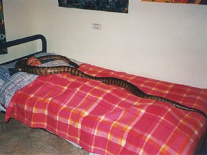 Who has huge snakes, and who lets their huge snake sleep in bed them??!! Chris, Washington DC