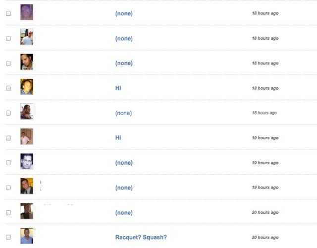 Wow. Aren’t you just dying to click?! Most captivating subject line in that assortment goes to…the guy who wrote “86”, I guess? I mean, two random digits are better than just tossing out a “Hey,” or an alarmingly creative “Heya,” right? The “Racquet, Squash?” fellow kinda intrigues me, like if you opened his email it would just go on listing a bunch more racket sports. “Tennis, Badminton, Kadima. Wanna go out Thursday?” OK, I’m being a dick, but you get the point. When you’ve got a bunch of emails to choose from, it’s pretty hard to select one that, in the one moment it has to advertise, offers only the word “(none)”. Or “Summers Close!” Really? Thanks. I don’t own a calendar. Or have the ability to sense temperature changes. OK, I’m being a dick again.