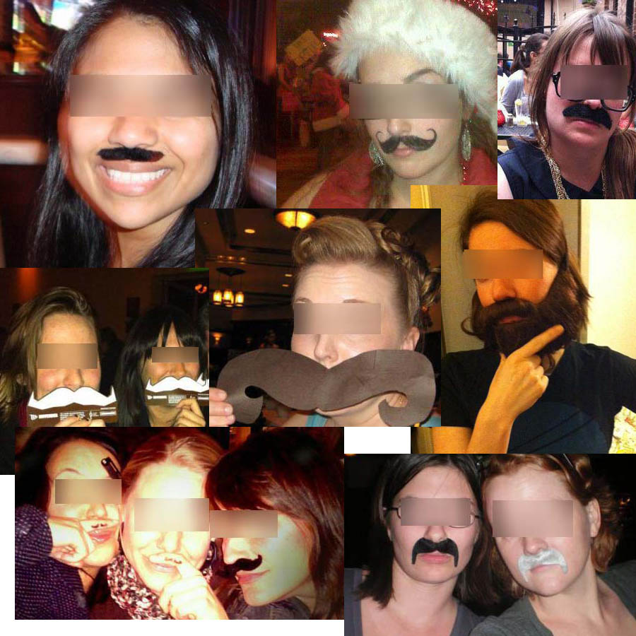 And those took me like…maybe…20 minutes to collect. See, like I said – EVERYWHERE. Go to OkCupid right now and look through five women’s profiles. Scroll to the last picture (it’s always the last picture – that one’s just for fun!), I promise you will find at least one fake mustache. What I’d like to know is…how? How did all these women decide more or less simultaneously that the way to snag a man was with fake facial hair? It’s just so random, and…not particularly sexy. I mean, they might as well be wearing Groucho glasses or doing the “What You Talking About Willis?” face. What exactly is the play here? What jaunty little notion is supposed to sneak into our minds when we see a woman with a ‘stache?